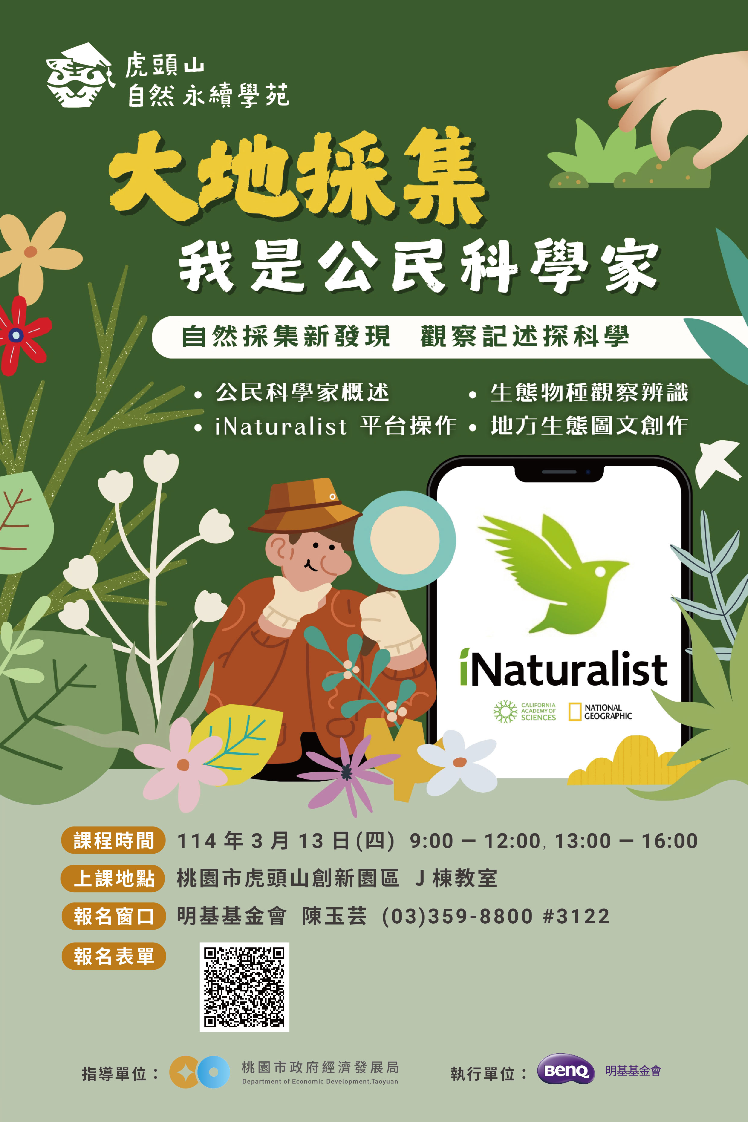課程大綱:公民科學家概述、生態物種觀察辨識、iNaturalist平台操作、地方生態圖文創作
