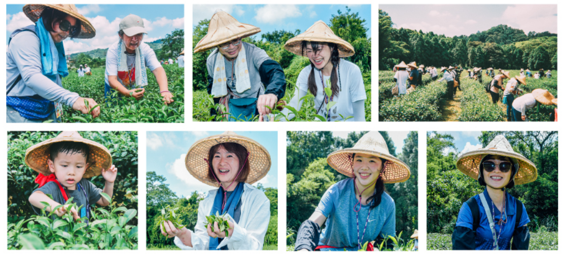 志工們揹著茶簍,小心翼翼地挑選一心二葉,汗水浸濕了衣衫,一對小姊弟儘管年紀小,仍樂在其中,臉上洋溢著豐收的欣喜,興奮地向茶農伯伯展示他們滿滿一簍的茶葉。大自然的機會教育,賦予孩子們最純淨的體驗。志工們彎腰仔細在茶樹間尋找著鮮嫩枝枒,收穫的不僅是滿滿茶葉,還有一份久違的平靜與喜悅。有位同仁帶著美國姪女一同前來,她分享來參加的原因是因為自己非常喜歡喝茶,好奇茶葉是如何製成的,能藉此機會親自走入茶園採茶,讓她更加珍惜每杯茶的甘甜滋味。