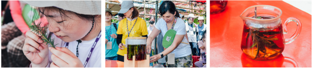 在採茶勞作後,沙坑紅寶志工們為大家精心準備了三種茶飲,仙草茶退火解渴,帶著淡淡的仙草香氣,是炎炎夏日消暑的最佳選擇。芳香萬壽菊茶則散發著迷人的百香果香,入口甘甜,讓人心曠神怡。沙坑紅寶茶是茶農的精心之作,色澤琥珀透亮,茶湯甘醇濃郁,回味悠長。三杯茶各具特色,都是茶農對土地深厚情感的結晶。秉持友善耕種的理念,讓民眾喝到最自然健康的茶湯。