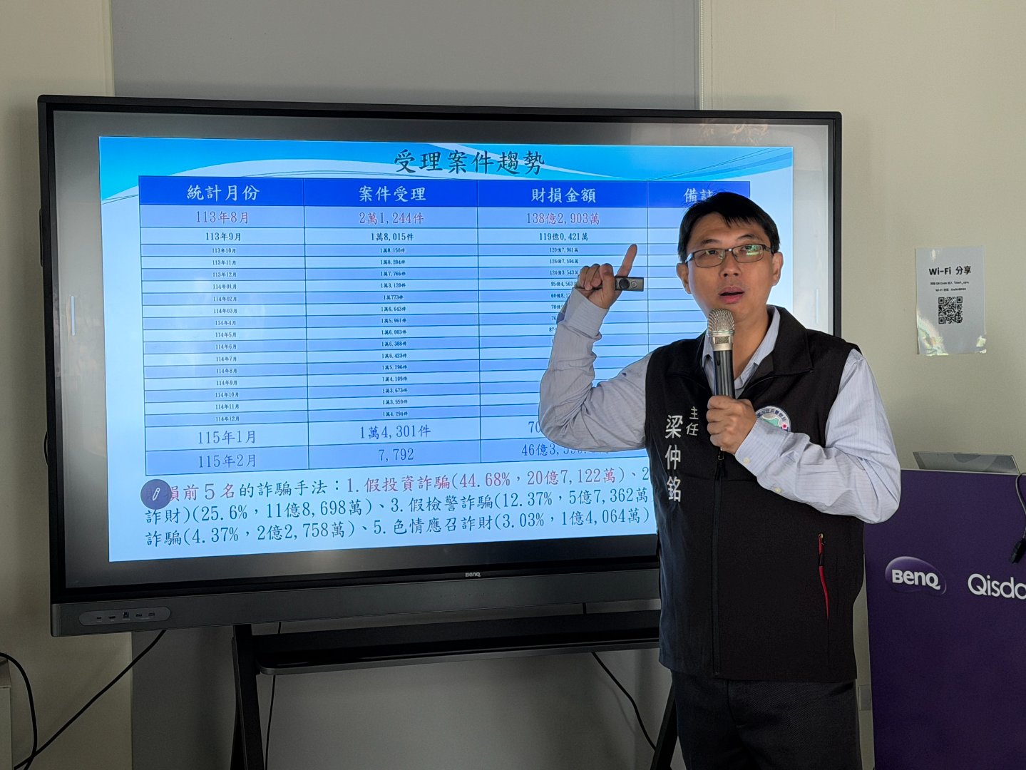 課堂中,梁仲銘主任先介紹「111」政府專屬簡訊碼,幫助民眾辨識政府訊息來源,降低誤信假冒通知的風險;接著再以假投資、LINE 帳號被盜用等近期常見案例為例,說明詐騙手法如何不斷翻新演變,並分析哪些族群較容易成為詐騙目標,提醒大家面對陌生訊息、投資邀約或通訊軟體異常狀況時,都應保持警覺,審慎查證。