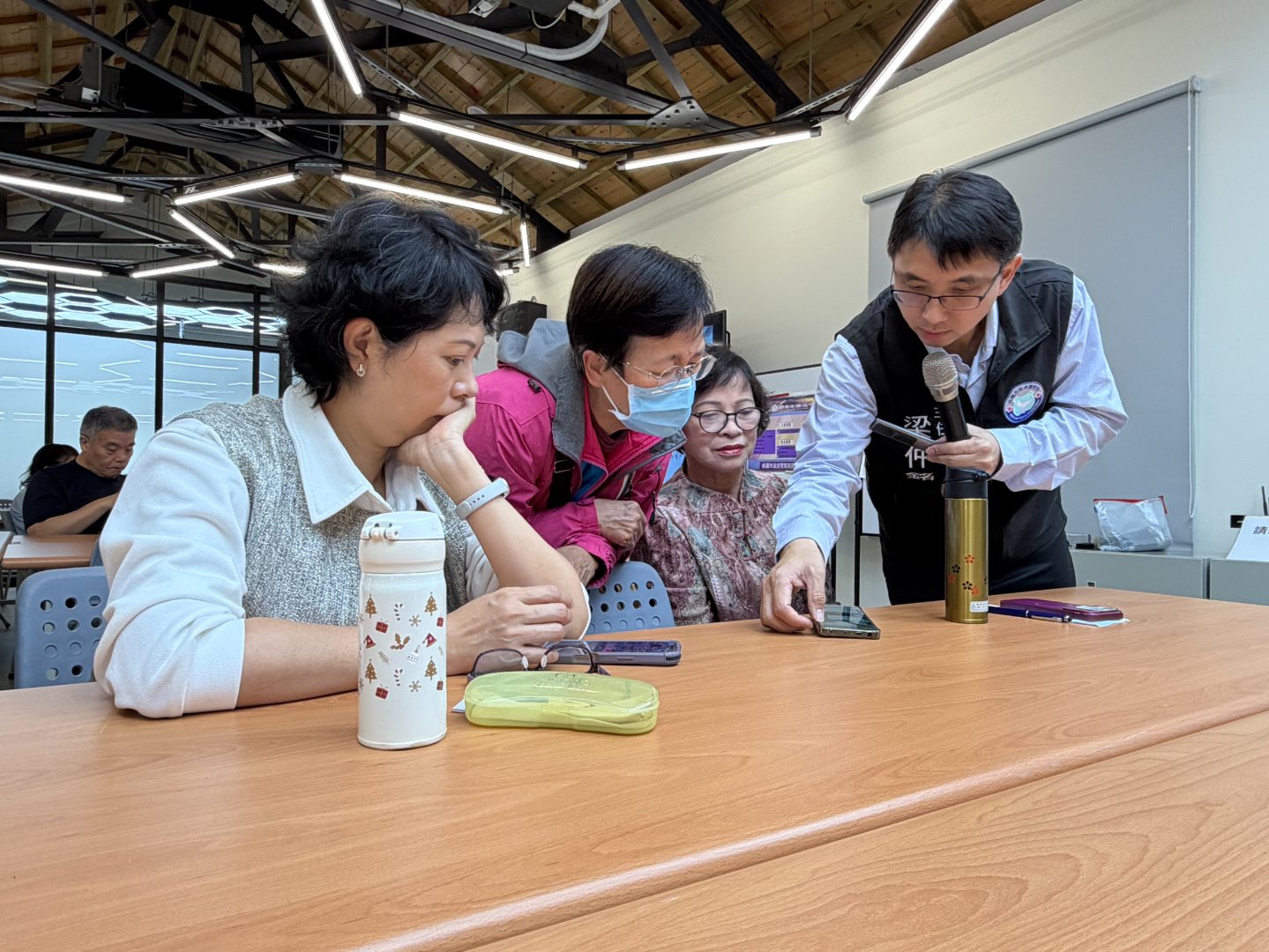除了分享案例外,梁仲銘主任也詢問現場學員是否曾有遭詐騙的經驗。現場參與者皆表示自己未曾受騙,於是梁主任接著反問大家,認為自己為什麼沒有被騙。透過這樣的互動,引導學員從自身經驗出發,重新思考平時接收訊息、接聽電話或面對可疑邀約時的判斷習慣,讓防詐觀念不只停留在課堂內容,也更貼近日常生活中的實際應用。