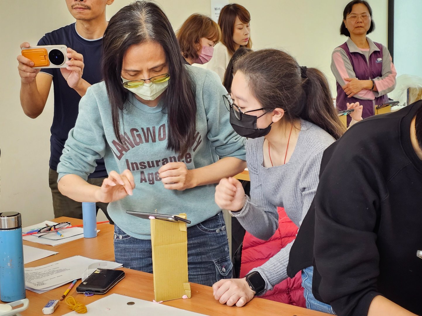 課程一開始,講師先從 Stop Motion Studio APP 的操作教學切入,帶領學員認識逐格動畫的拍攝方式與製作流程;隨後再透過旋轉鳥籠的製作與體驗,補充動畫形成背後的視覺暫留原理,讓學員從數位操作與手作觀察兩個面向理解動畫的基本概念。為協助學員發想故事內容,課程中也播放了《可瑪猫》、《天竺鼠車車》、《王爺去哪兒》與《馬路如獅口》等多部偶動畫作品,引導大家從不同風格的作品中觀察敘事方式、角色設定與畫面表現。午餐過後,各組學員陸續展開偶動畫主題與腳本發想,逐步梳理故事內容與拍攝畫面,為接下來的實作拍攝做好準備。