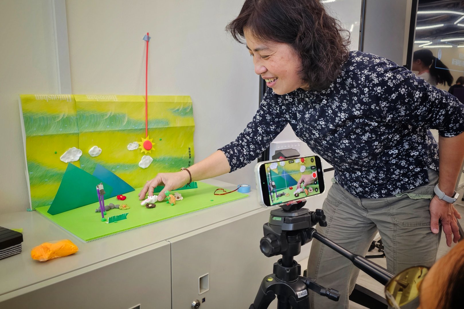 春分時節,虎頭山創新園區裡枝椏漸茂、生氣盎然,甫卸下燈會的熱鬧景象,又展現出另一種屬於春日的清新景致。明基基金會「虎頭山社區自然學苑」課程《我的偶動畫》也在這樣的時節中展開,邀請大朋友、小朋友一同走進逐格動畫的世界,透過實作感受動畫創作的魅力與樂趣。此次課程由講師劉靜宜帶領,並由林智國、戴綺瑩、徐芷齊、沈苡妮四位助教共同協助,在默契十足的教學團隊陪伴下,學員能更安心地投入創作。