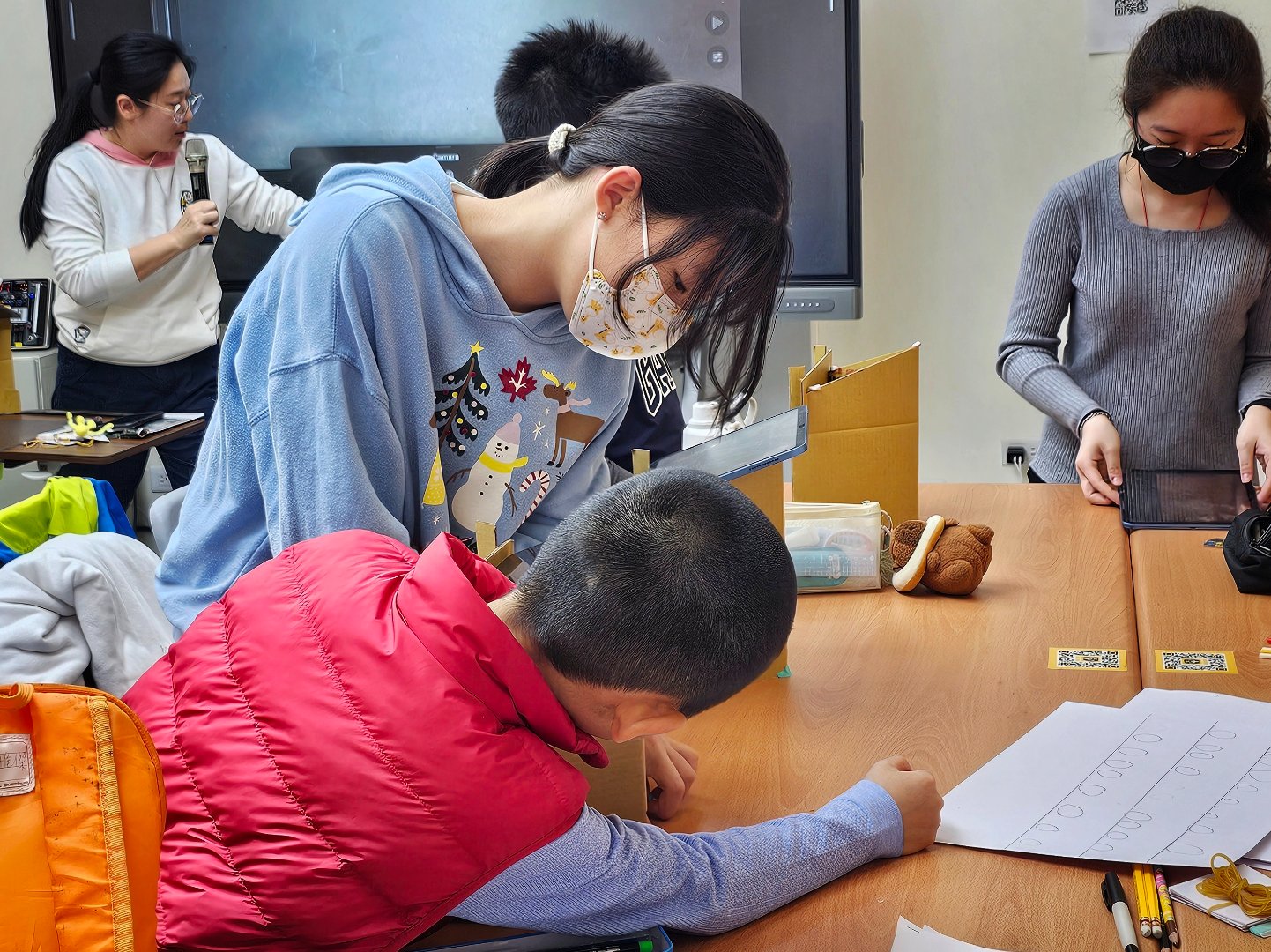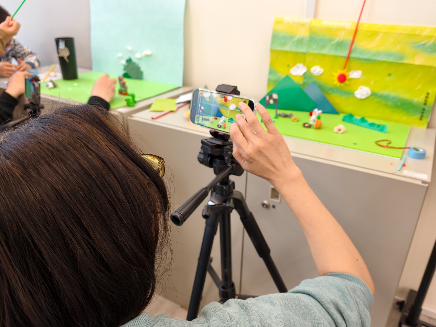 進入實作拍攝階段後,各組學員依照腳本內容投入創作,完成《龜兔好朋友》、《三毛種花記》、《毛毛蟲的一生》、《害羞聖誕人找同伴》、《傻鳥救主人》、《一起去滑雪》、《挖礦者》、《春天最香的花》與《醒著的夢》等九部作品。一個個充滿童趣與想像力的故事,在學員的巧手與鏡頭下逐步成形。大家一邊操作道具,一邊調整角色動作與拍攝畫面,將原本停留在腦海中的想法,透過逐格動畫一格一格地轉化為具體影像。