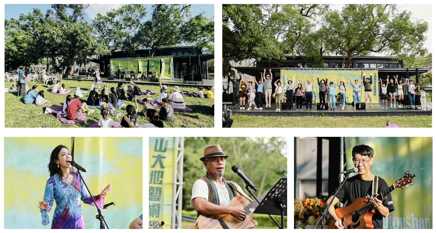 大地藝術創作、友善農學市集、自然習作、草地音樂會與紙風車親子劇場,散落在場域各處,如同一張張被翻開的大地頁面,人們走入其中,聆賞、閱讀、駐足、對話,與大地閑步同行。