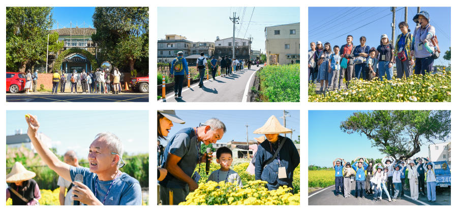 大地志工梁澤真:「菊花每年收成後,農人仍細心翻土,輪作水稻,讓大地喘息,避免病害侵擾,看似尋常的農事,其實是歲月淬鍊出的智慧,一筆一劃刻在田埂之間,經過這番刻苦,我們才有機會參與這次採收。我最喜歡的是走讀銅鑼的這一段,賴桑的引導宛如時光之鑰,將看似尋常的街景,緩緩注入過往的人文軼事,讓整個街區忽然鮮活起來,彷彿與銅鑼展開一場深刻的對話。因為你們,銅鑼不再只是地名,而是一個有生命力,有故事的地方。謝謝你們用心守護這片土地,讓我們有機會走進、認識,並愛上它。」