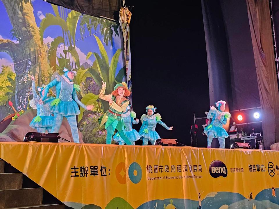 桃園市政府與明基文教基金會攜手舉辦的「虎頭山大地藝術節」10月底在虎頭山創新園區登場,除了集結12位國內外藝術家作品在園區展出,還邀請國內知名劇團紙風車劇團於昨(8)日晚間演出《番薯森林奇遇記》,現場超過2千位大小朋友坐滿虎頭山創新園區的大草坪,與台上的演員們開心互動。