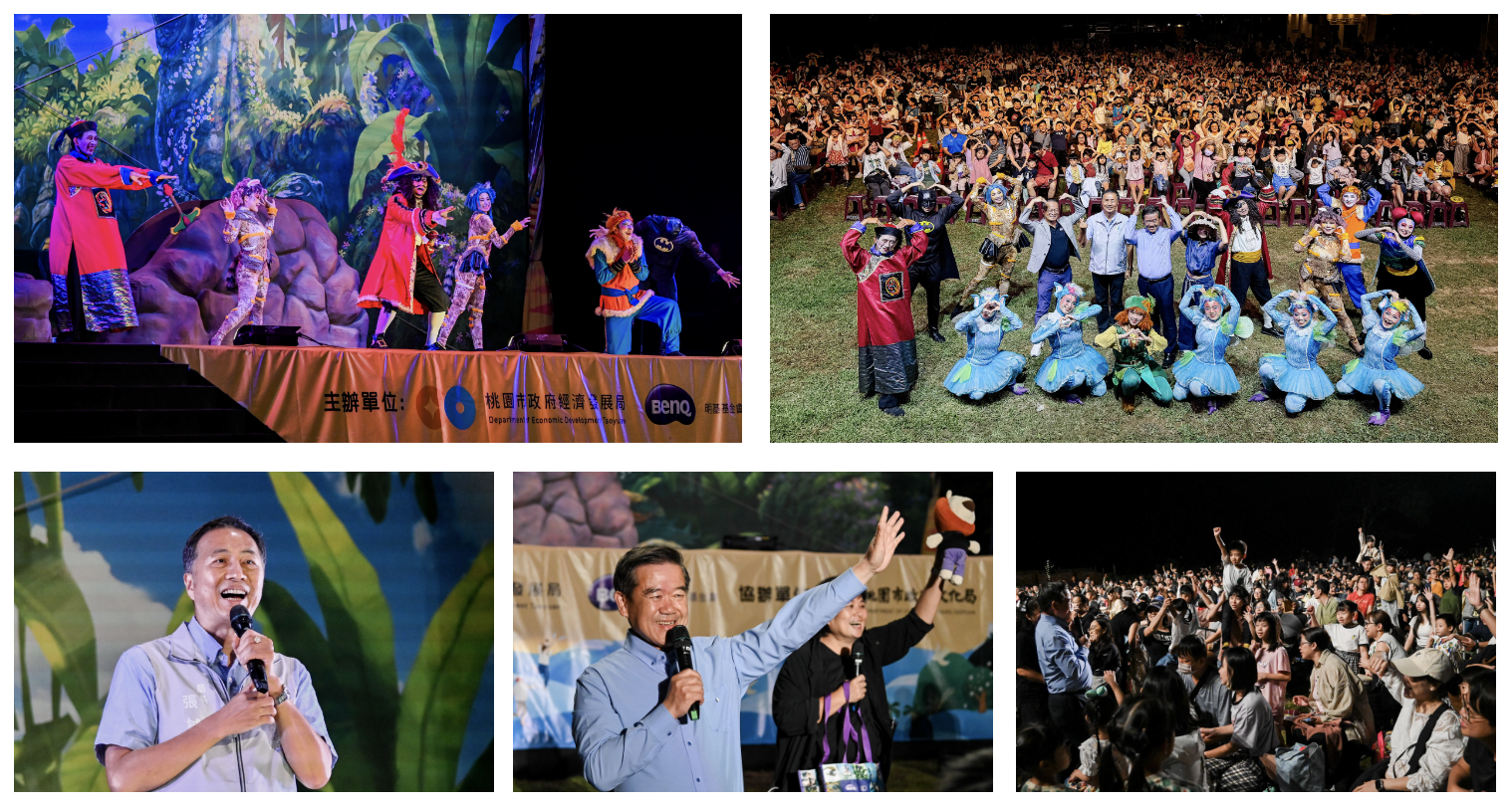 演出開始後,超過兩千名大小朋友坐滿虎頭山的大草坪。笑聲、驚呼與回應聲在場域間來回迴盪,讓這片草地成為最活潑、也最動人的大地劇場。